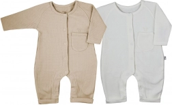 Le tissu en coton agréable avec une touche d’élasthanne assure douceur, respirabilité et liberté de mouvement. La combinaison garde le dos de bébé bien couvert, ce qui en fait une pièce essentielle du trousseau pour nouveau-nés et nourrissons.