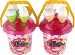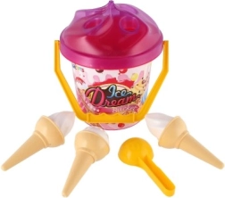Le seau en plastique léger avec anse, 3 cornets et la cuillère à glace sont parfaits pour le bac à sable, la plage et le jardin. Grâce à la certification CE, le set est adapté et sûr pour les plus petits.