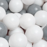 Incluses, 150 balles en plastique blanches et grises. Elles respectent les normes de sécurité (p. ex. EN-71, CPSC) et favorisent la motricité et la coordination.