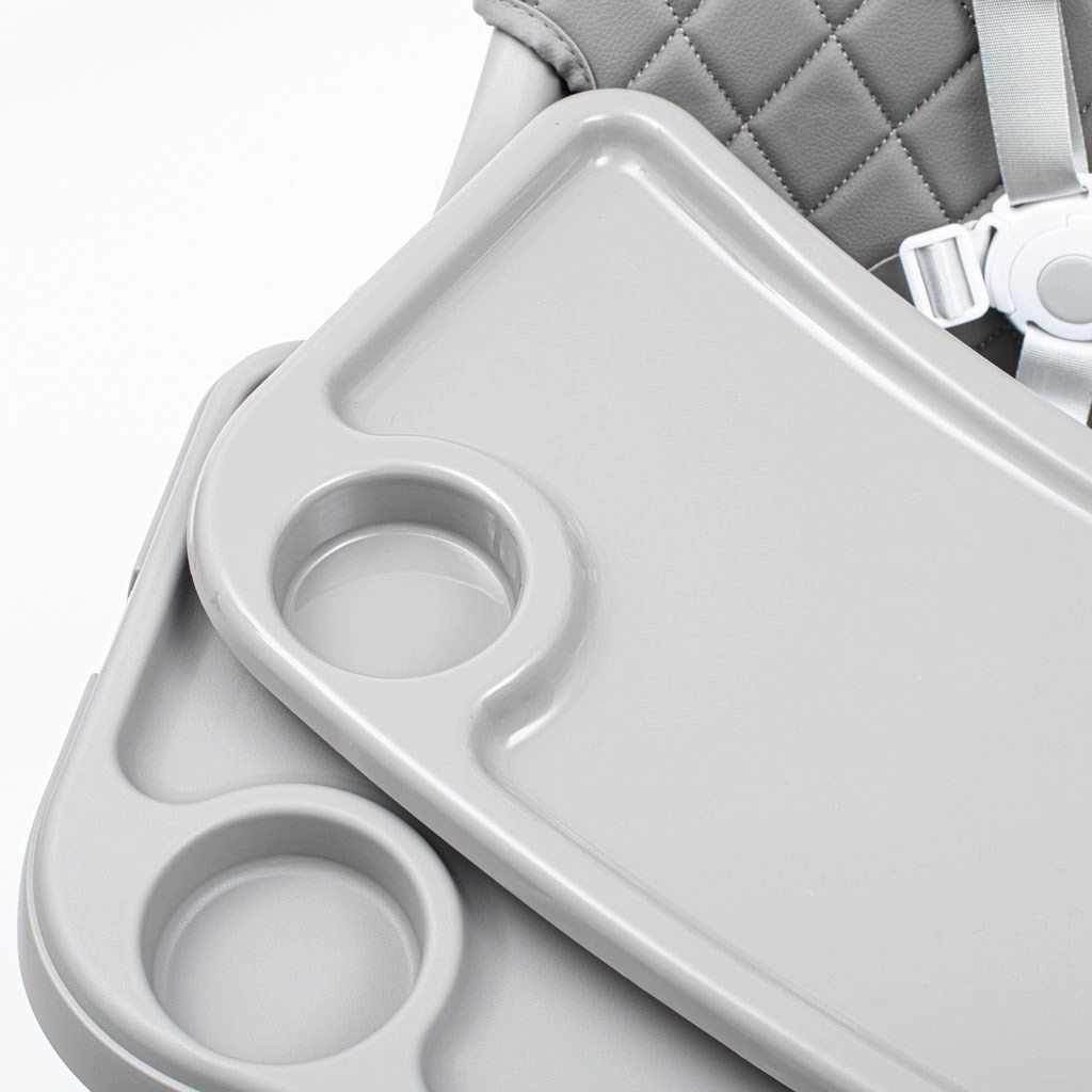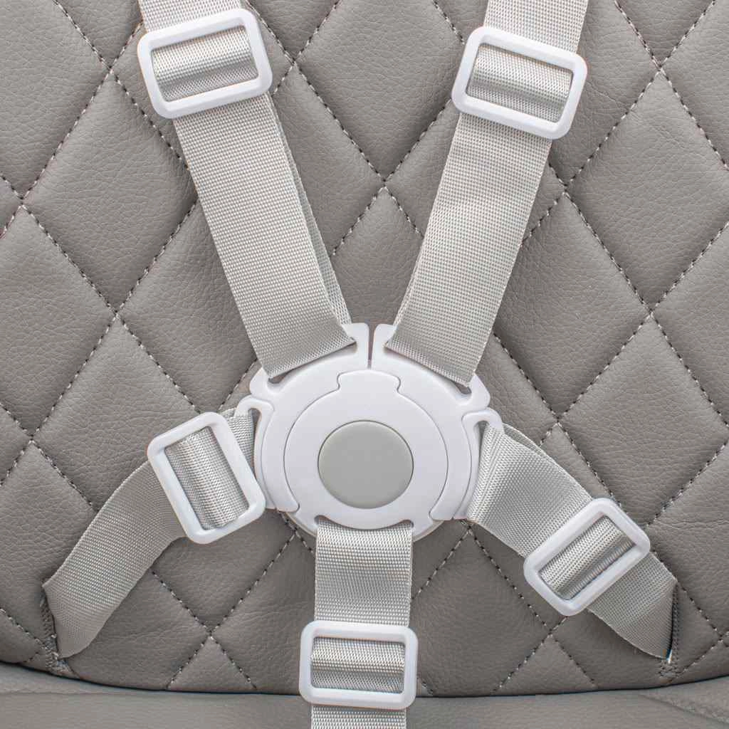 Un revêtement souple en cuir éco, un soutien latéral et des harnais à 5 points assurent la stabilité et la sécurité de l’enfant à chaque repas.