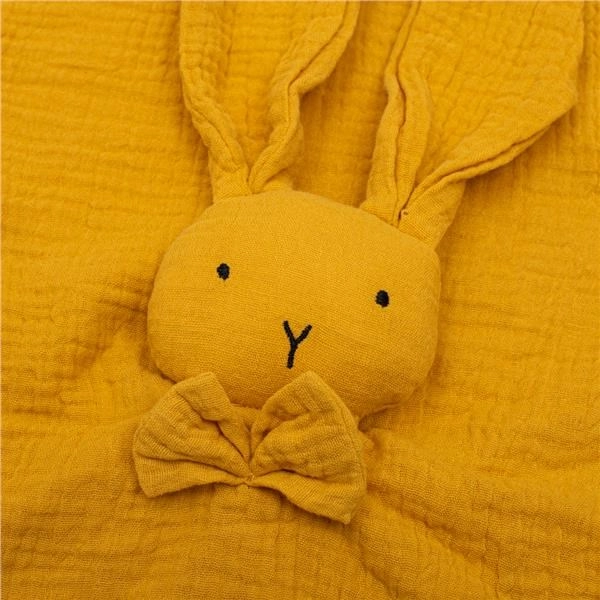 Le doudou en mousseline New Baby Rabbit de couleur moutarde est le premier compagnon idéal pour bébé. Il est fabriqué en 100 % coton biologique avec un garnissage doux et aide à instaurer un sentiment de sécurité et un endormissement paisible. Son design minimaliste et ses couleurs douces s’intègrent parfaitement à tout trousseau et s’harmonisent avec d’autres produits en mousseline.