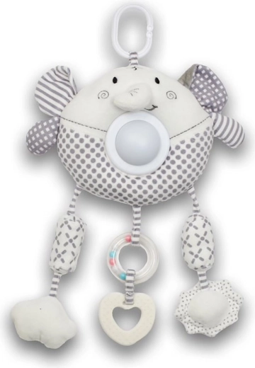 Un adorable petit éléphant pour les tout-petits ravira avec de douces lumières, des mélodies apaisantes et d’agréables vibrations. Grâce au clip en plastique, vous l’attachez facilement à la poussette ou au siège auto, et votre bébé sera captivé par les anneaux de dentition colorés, la lumière, la musique et l’effet vibrant.