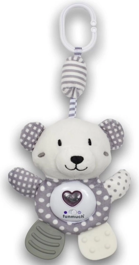 Ce petit ourson coloré est le compagnon idéal pour votre bébé à la maison comme en déplacement. Il captive avec ses lumières et ses mélodies, stimule l’ouïe et la vue, et vibre agréablement après traction pour apaiser bébé. Les anneaux de dentition colorés soulagent pendant la poussée dentaire et favorisent le développement de la motricité.