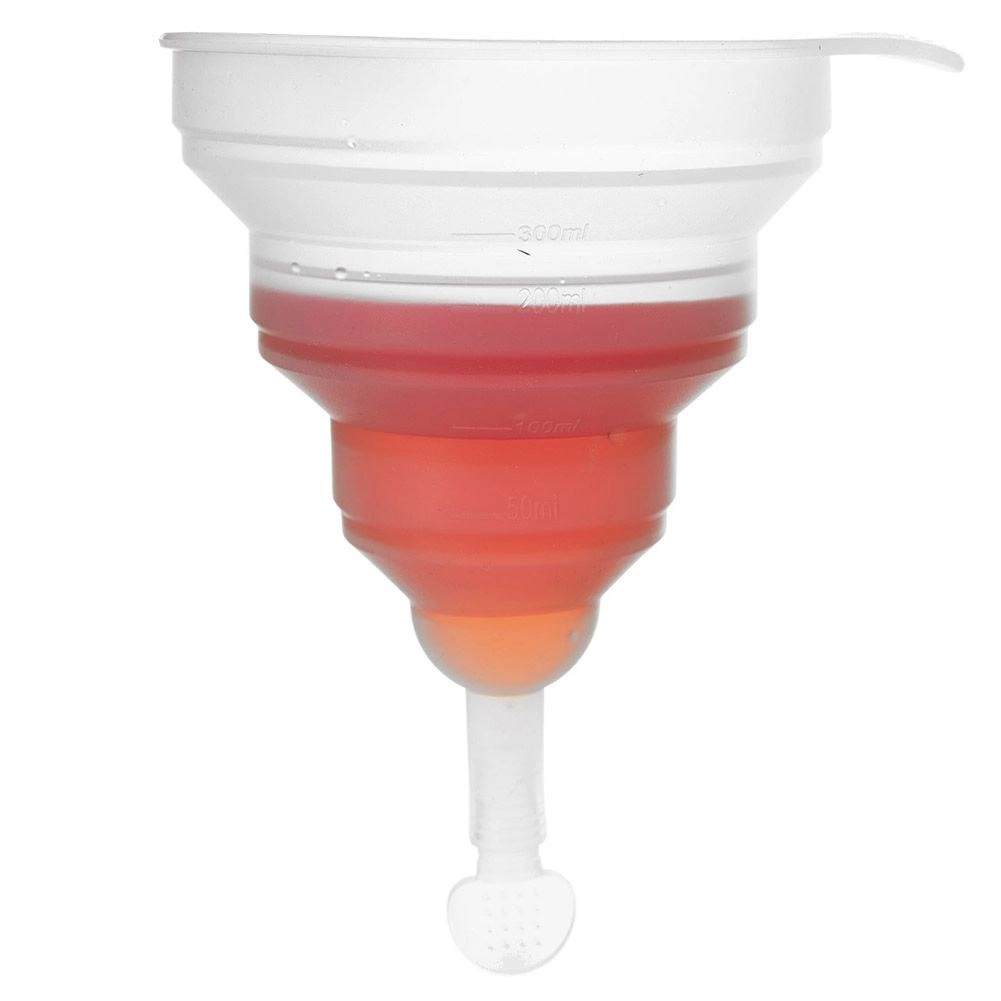 Entonnoir de cuisine pliable pratique, diamètre 12 cm et hauteur 17 cm, avec bouchon et doseur intégré. Fabriqué en silicone résistant, il économise de la place dans le tiroir et convient au remplissage des bouteilles et des récipients. Résiste à des températures jusqu’à 100 °C et passe au lave-vaisselle (sans le bouchon). Idéal pour transvaser jus, liqueurs, vin ou bière et pour un dosage précis de 50 à 300 ml. Matériau résistant, conception pliable, échelle graduée, entretien facile.