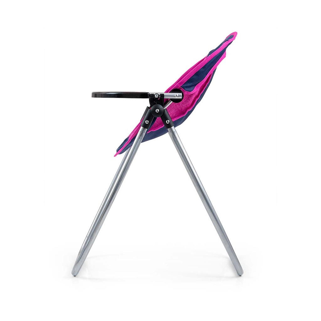 Structure métallique légère, assise confortable et plateau circulaire pour nourrir la poupée en toute sécurité. La chaise se plie facilement pour gagner de la place et voyager aisément.