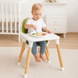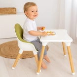 Chaise haute pour les repas, petite chaise pour enfant et ensemble table + chaise dans un seul produit pour gagner de la place et de l’argent, s’adaptant à chaque phase de croissance.