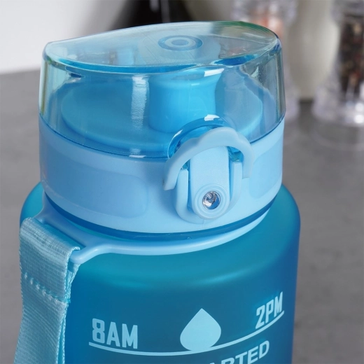 Profitez d’une hydratation régulière avec cette bouteille légère et résistante de 1 litre. Grâce aux repères horaires et phrases motivantes, vous boirez tout au long de la journée, tandis que la jauge précise en millilitres (100–900 ml) et en fl oz vous aide à contrôler votre apport. Le large goulot facilite le remplissage et le nettoyage, et le couvercle à clapet avec verrou anti-ouverture accidentelle assure une étanchéité fiable.