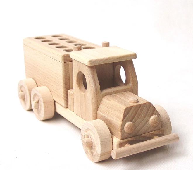 Élégant porte-crayons en bois en forme de camion-benne, fabriqué en hêtre de qualité au look naturel. Équipé de roues pivotantes, de bords arrondis pour un usage et un jeu en toute sécurité, et pouvant accueillir jusqu’à 8 crayons et stylos.