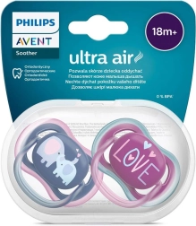 PHILIPS AVENT Ultra Air est conçue pour le confort maximal des tout-petits plus âgés. Grâce à ses orifices de ventilation exceptionnellement grands, la peau respire mieux et reste plus sèche et plus apaisée. La tétine orthodontique, compressible et symétrique respecte le développement naturel des dents et du palais et est fabriquée en silicone résistant sans BPA, sans goût ni odeur.