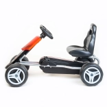 Les grandes roues en plastique avec roulements assurent une conduite fluide et silencieuse sur différents types de surfaces, sans crainte de crevaison. Le carter de chaîne et les protections en plastique renforcent la sécurité lors du jeu. La kart répond aux normes de sécurité européennes et convient aux enfants de 3 à 8 ans, avec une charge maximale jusqu’à 30 kg.