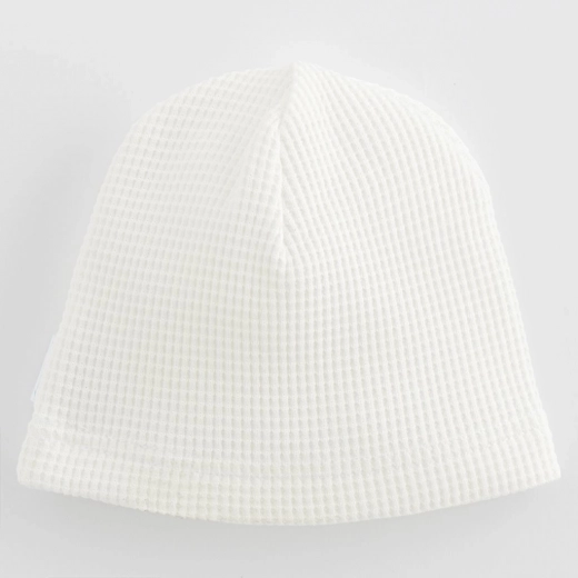 Bonnet pour bébé doux et confortable de la collection NEW BABY Luxury Clothing en blanc universel. Fabriqué en 100 % coton, il est respirant, doux et délicat pour la peau sensible de bébé. Grâce à sa coupe bien ajustée, il ne serre pas et tient bien sur la tête.