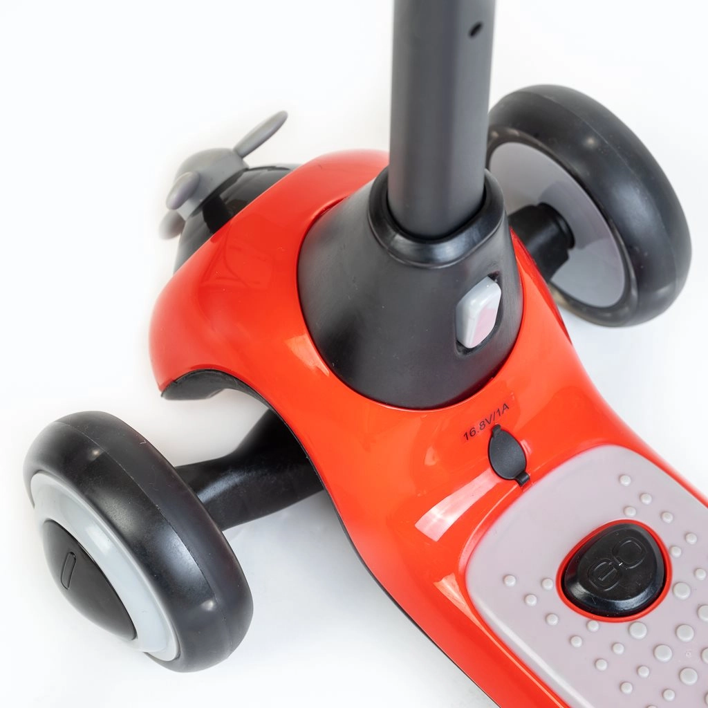 Offrez aux enfants la joie du mouvement avec la trottinette électrique Baby Mix Moovi dans une couleur rouge attrayante. Conçue pour les petits aventuriers qui veulent explorer le monde en toute sécurité et avec le sourire. Le moteur performant 14,8 V / 100 W assure une accélération fluide et une vitesse allant jusqu’à 10 km/h, sûre et amusante pour les enfants.
