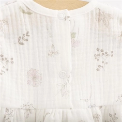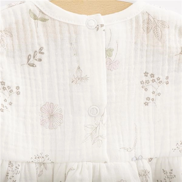 La fermeture par bouton-pression au dos facilite l’habillage et le déshabillage. La mousseline 100 % coton est réputée pour sa durabilité – elle devient encore plus douce et agréable au toucher après lavage. Cette petite robe est parfaite pour les promenades d’été, les visites et les séances photo.