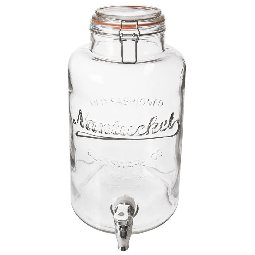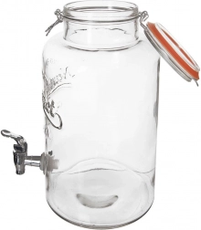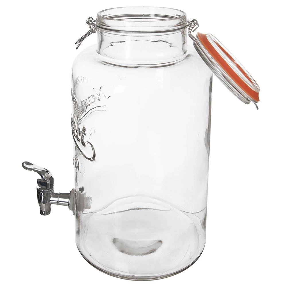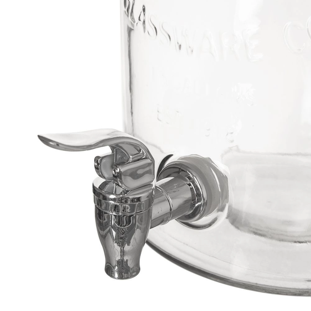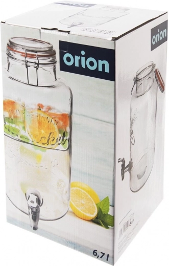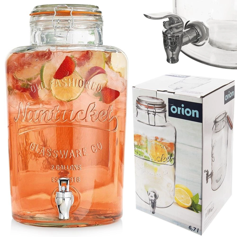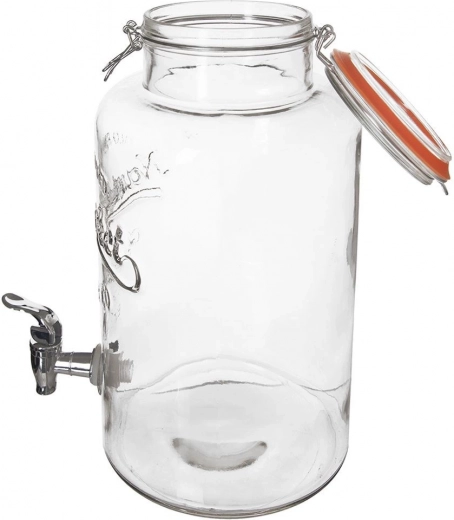 Distributeur de boissons en verre stylé d’une capacité de 6,7 l avec robinet métallique et couvercle à clip hermétique, idéal pour la limonade maison, l’eau infusée aux fruits et le thé glacé. La large ouverture facilite le remplissage et le nettoyage, le verre épais et résistant avec relief met joliment en valeur le contenu, et le couvercle avec joint en silicone protège les boissons des insectes.