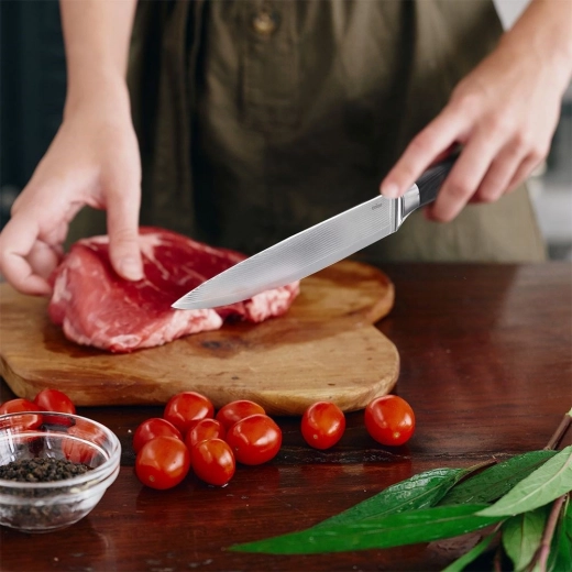Ce couteau est un excellent choix pour la préparation quotidienne des repas – de la coupe fine des fruits et légumes, au hachage des herbes, jusqu’au découpage de la viande. Bien utilisé, il conserve longtemps son tranchant et devient un outil indispensable dans toute cuisine.