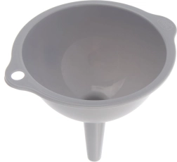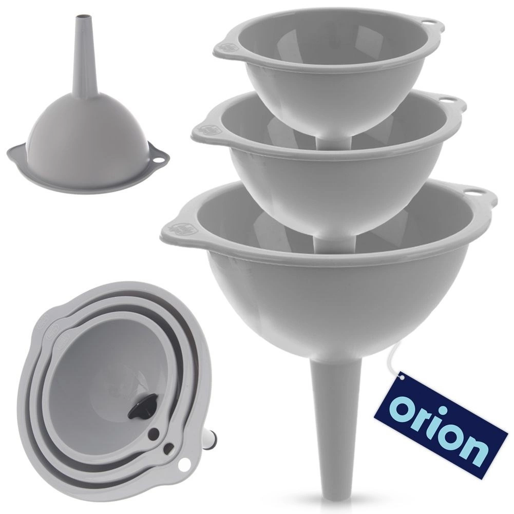 Pratique set de trois entonnoirs de cuisine en tailles 10, 12 et 14 cm pour verser et transvaser facilement sans salir. Ils sont résistants, légers, compatibles lave-vaisselle et grâce à leurs poignées de prise, faciles à manipuler. Idéals pour le remplissage de bouteilles et de récipients, le transvasement de boissons et le transfert d’aliments secs.