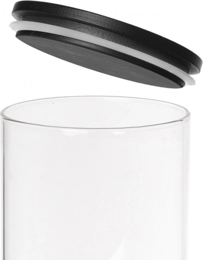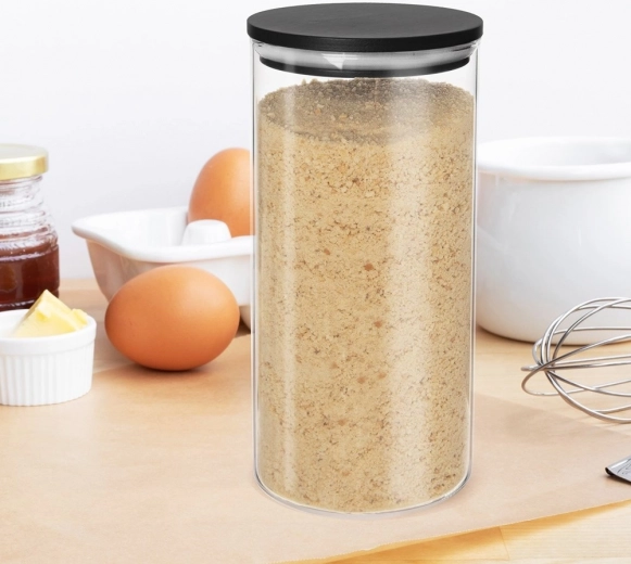 Pratique bocal en verre de 980 ml avec couvercle noir et joint en silicone pour garder vos aliments frais plus longtemps. Fabriqué en verre borosilicaté résistant, idéal pour organiser le garde-manger, conserver les aliments secs et contrôler facilement le contenu grâce à sa transparence.