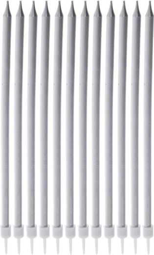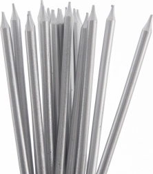 Créez un moment inoubliable au soufflage des bougies avec ce set de longues bougies argentées. Grâce à leur hauteur de 14,5 cm, elles se distinguent même sur les grands gâteaux tout en ne masquant pas les décorations. Les bases blanches pratiques assurent un placement sûr et ferme des bougies dans la génoise.