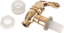 Pratique robinet de rechange pour distributeurs en verre et bonbonnes de boissons dans une élégante couleur dorée. Dimensions universelles adaptées à la plupart des récipients courants avec passage fileté pour robinet, avec joints et écrou pour un montage facile inclus. Grâce à sa fabrication de qualité et à des matériaux durables, il vous servira pendant de longues années.