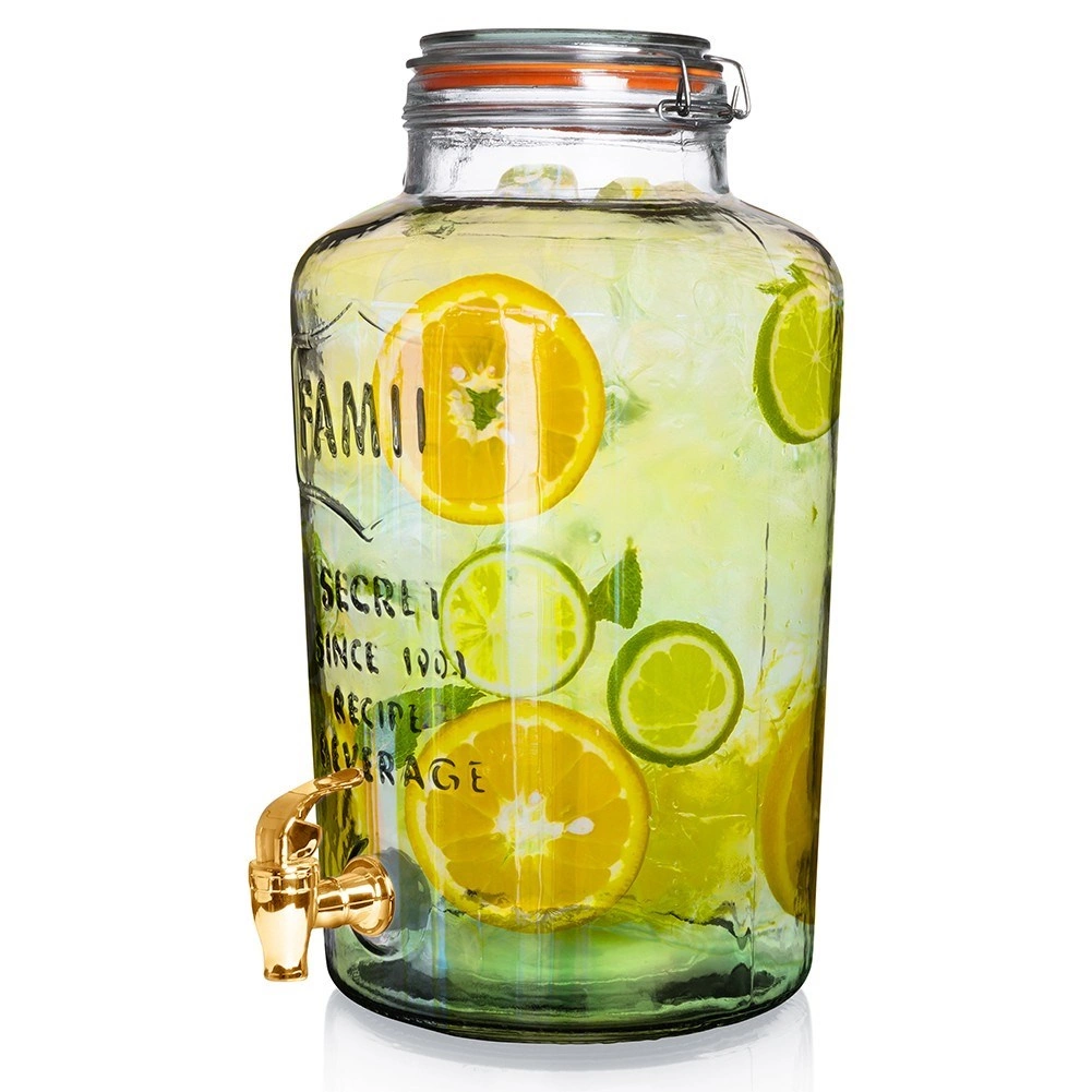 La taille et le filetage universels assurent la compatibilité avec la plupart des récipients en verre pour limonades, eau ou thé glacé maison. La finition dorée métallique apporte un aspect premium à votre table tout en offrant un levier de commande pratique pour un débit fluide.