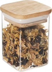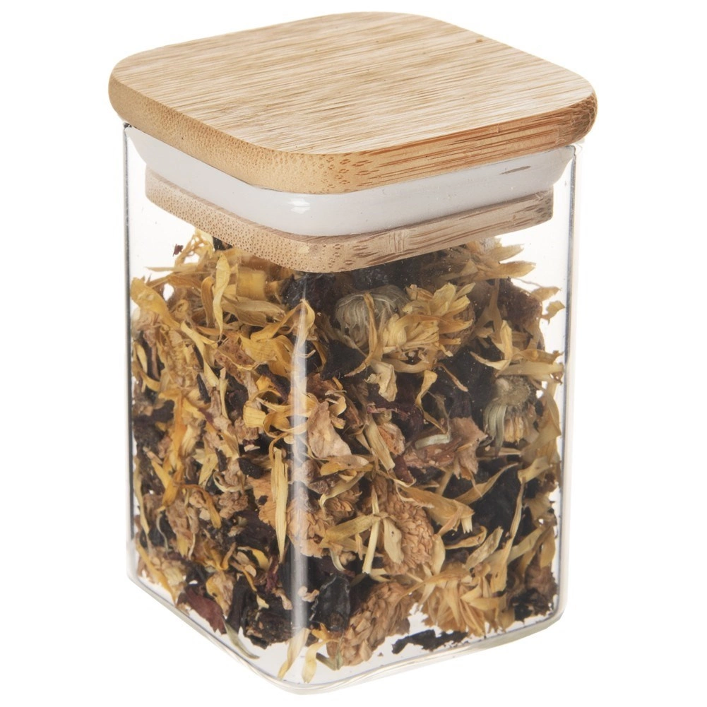 Élégant bocal en verre de 200 ml avec couvercle en bambou et joint en silicone pour garder vos aliments frais plus longtemps. Fabriqué en verre borosilicate résistant, il présente des dimensions compactes de 6 × 6 × 8,5 cm et une forme carrée moderne. Idéal pour le café, le thé, les épices, les noix et autres ingrédients secs. Grâce à sa fermeture hermétique, il préserve les arômes et les saveurs et s’intègre parfaitement dans toute cuisine.