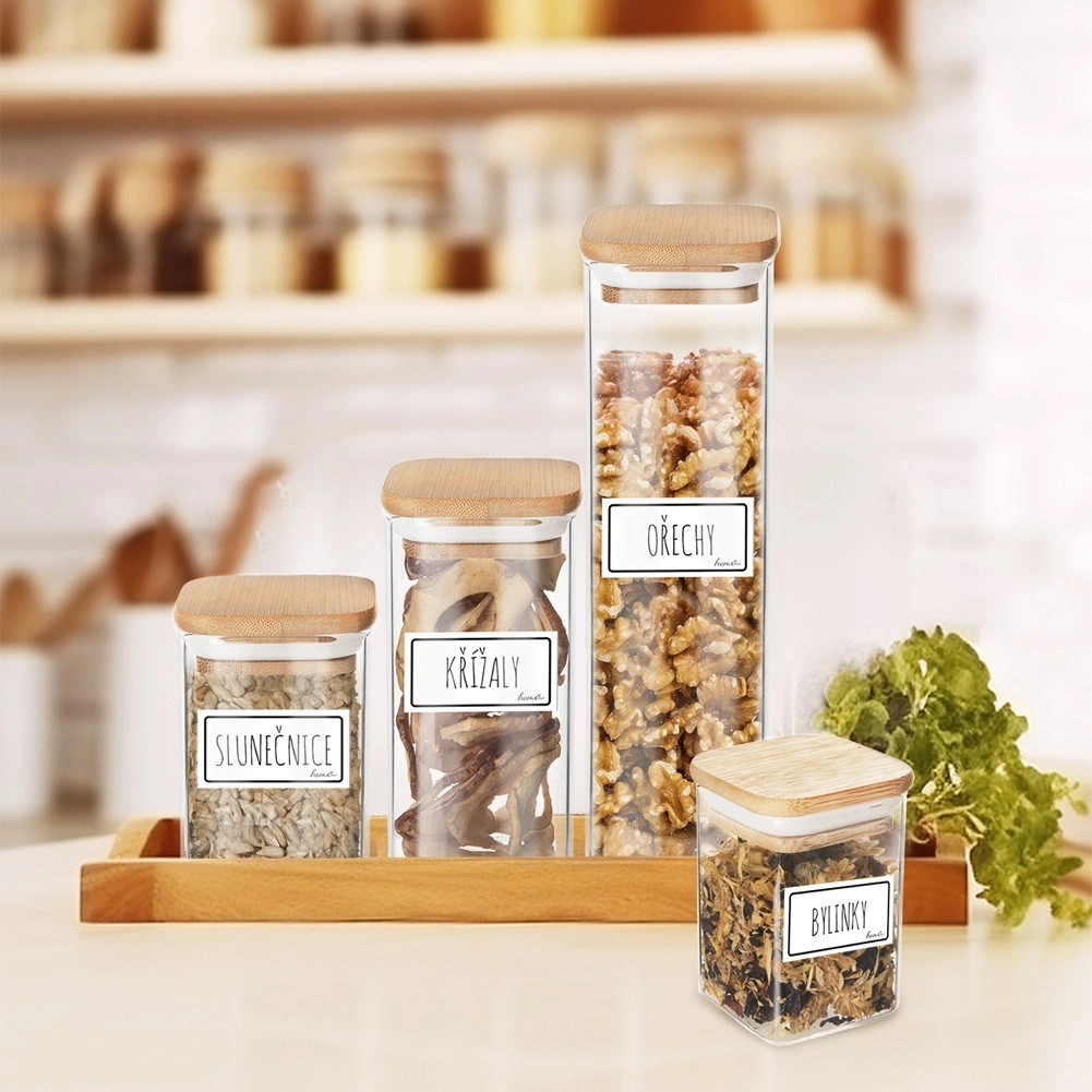 Idéal pour organiser le garde-manger et le plan de travail – il garde les aliments au sec, protégés de l’humidité et de la perte d’arôme. Le récipient en verre passe au lave‑vaisselle (nous recommandons de laver le couvercle à la main), ce qui facilite l’entretien et garantit une longue durée de vie.