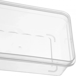 Organisez votre réfrigérateur avec clarté et gardez jambon, fromages ou fruits frais plus longtemps. La forme basse et allongée s’insère parfaitement sur les étagères et dans les tiroirs du frigo, et les parois transparentes permettent de contrôler rapidement le contenu sans ouvrir. Le plastique robuste est léger tout en restant durable pour un usage quotidien.