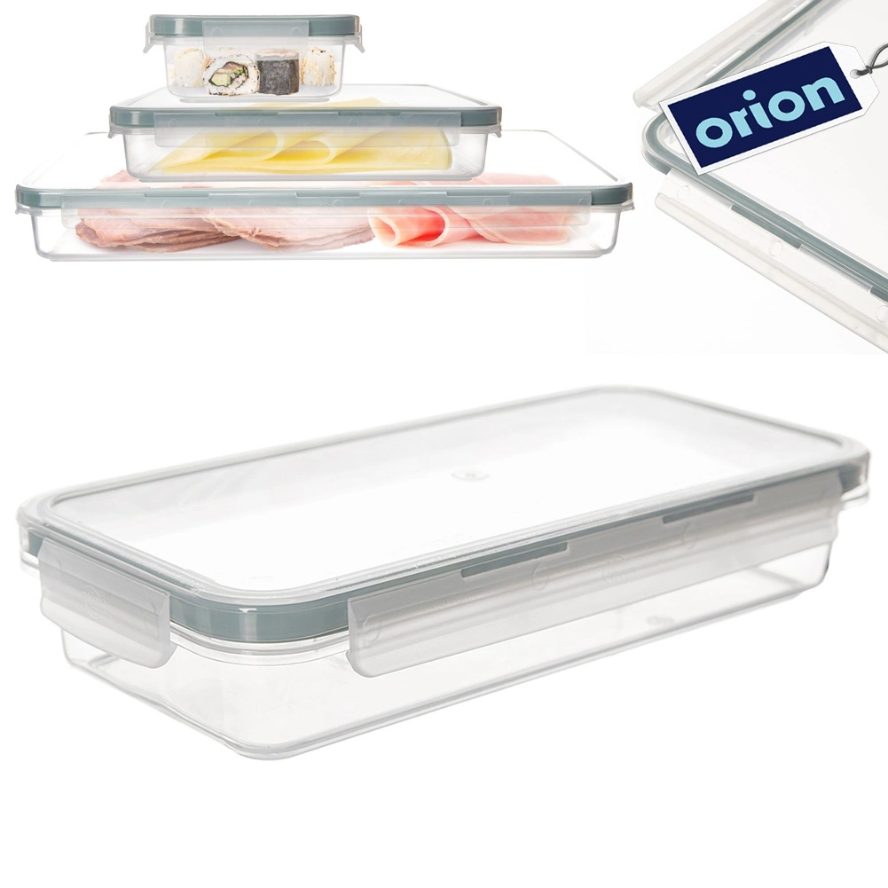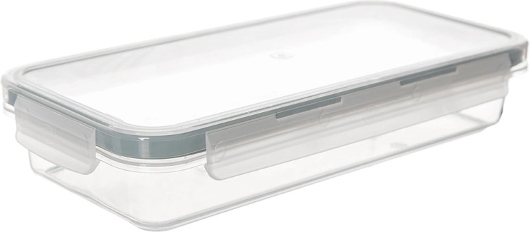 Boîte alimentaire basse universelle en plastique résistant et transparent, parfaite pour conserver, transporter et organiser les repas. Grâce au couvercle robuste avec 4 clips et au joint en silicone de qualité, le contenu est protégé de l’air et de l’humidité, pour des aliments qui restent frais plus longtemps.