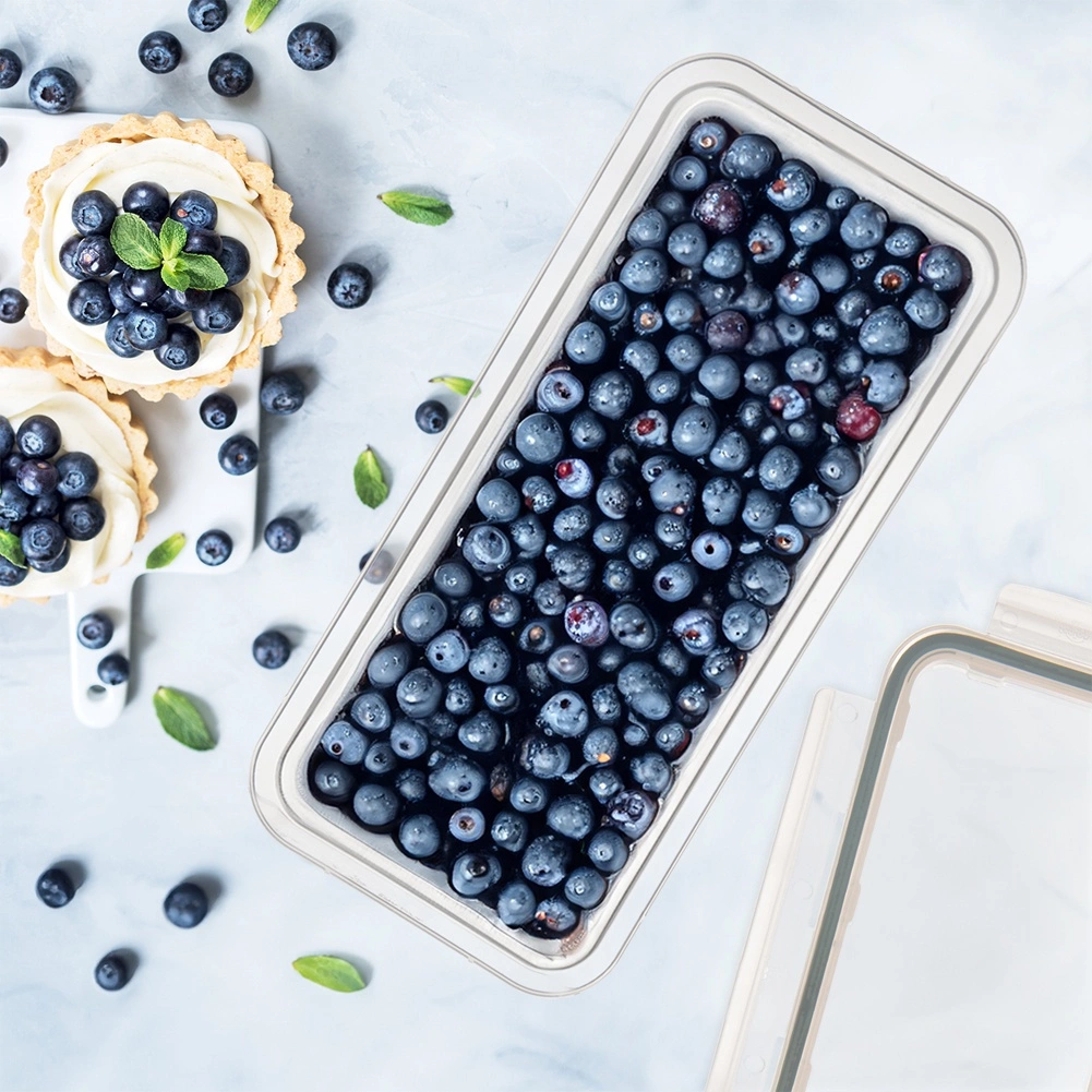 Le profil bas et le couvercle plat économisent de la place dans le réfrigérateur et permettent d’empiler plusieurs boîtes en toute sécurité.
