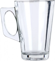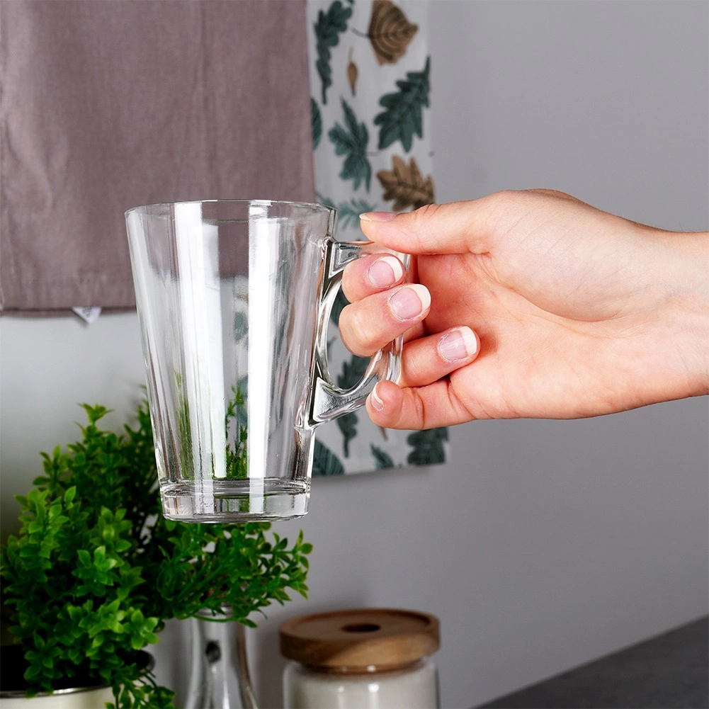 Élégant lot de six verres à latte de 255 ml avec anse confortable. Fabriqués en verre épais et résistant, adaptés aux boissons chaudes et froides, lavables au lave-vaisselle et utilisables au micro-ondes. Idéal pour cafés, thés, eau et limonades – un excellent choix pour la maison comme pour la restauration.