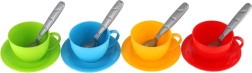 Théière, 4 tasses, 4 soucoupes, 4 cuillères (combinaison de couleurs)