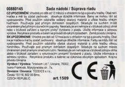 Le set contient tout le nécessaire pour un petit goûter-thé : une théière, des tasses avec soucoupes et des cuillères aux couleurs joyeuses. Livré dans un filet pratique qui facilite le rangement et le transport. Convient dès 12 mois.