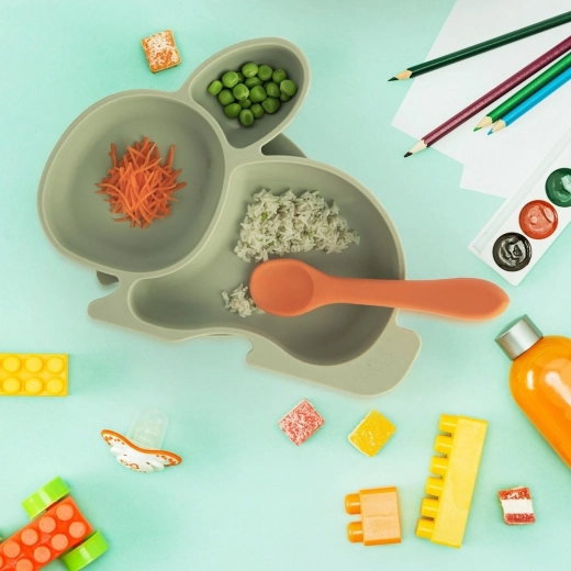L’assiette en silicone pour enfant avec trois compartiments séparés aide à servir des portions variées et à garder les différents éléments du repas séparés. La grande et puissante ventouse sur le dessous réduit les glissements et renversements, idéale pour apprendre à manger en autonomie.
