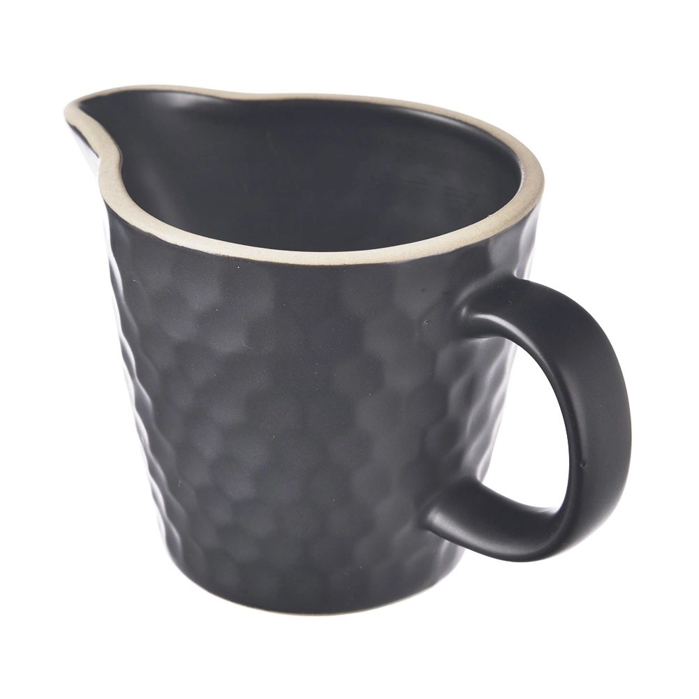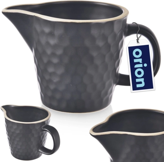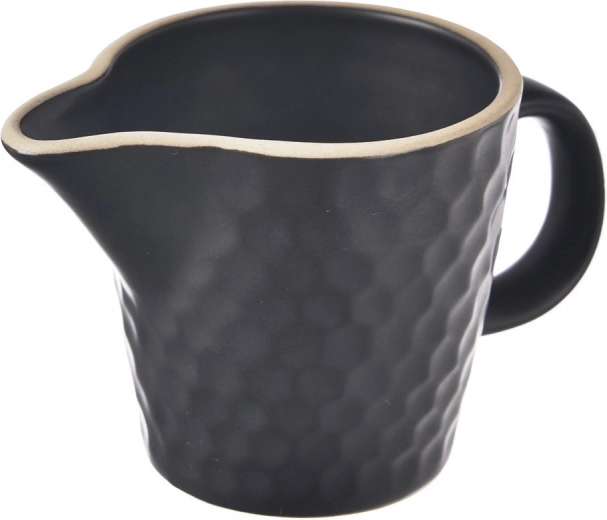 Élégant pichet à lait en céramique de la collection TEA TIME en noir d’une capacité de 100 ml, idéal pour servir du lait, de la crème ou des sauces. Il dispose d’un bec verseur précis, d’une anse confortable et d’une construction en grès avec une texture alvéolée. Compatible lave-vaisselle et micro-ondes.