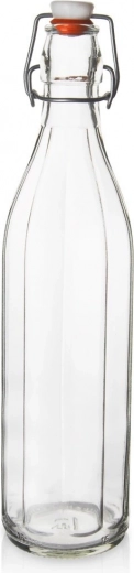 Bouteille en verre pratique de 1 l avec bouchon à étrier pour une étanchéité à 100 %. Le verre cristallin met élégamment en valeur le contenu et son design rétro s’intègre à toutes les cuisines. Idéale pour jus, limonades, sirops, liqueurs et huiles.