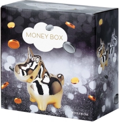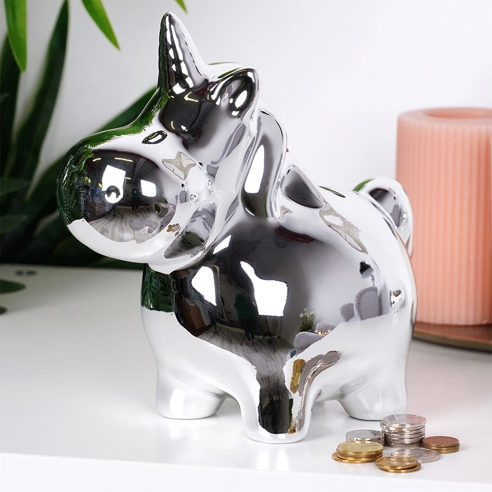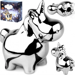 Cette tirelire licorne en céramique se distingue par son surface argentée effet miroir, apportant une touche glamour à votre intérieur. Avec des dimensions de 18 × 10,5 × 18 cm, elle offre assez d’espace pour les petites pièces comme pour les billets pliés, tout en restant stable sur une étagère, une commode ou un bureau.
