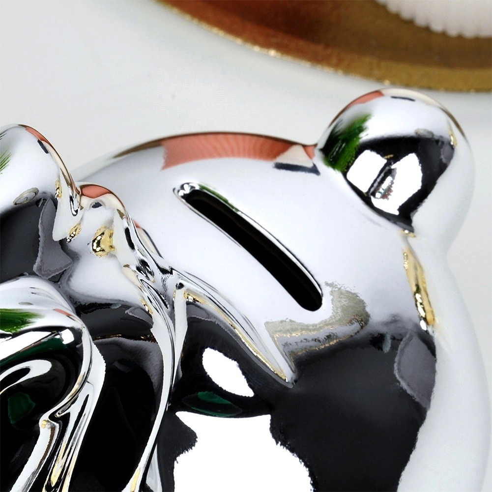 Le fini très brillant, à l’allure chromée, transforme la tirelire en une décoration spectaculaire qui se démarque sur une étagère comme sur un bureau.