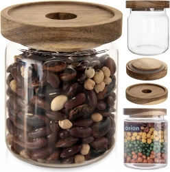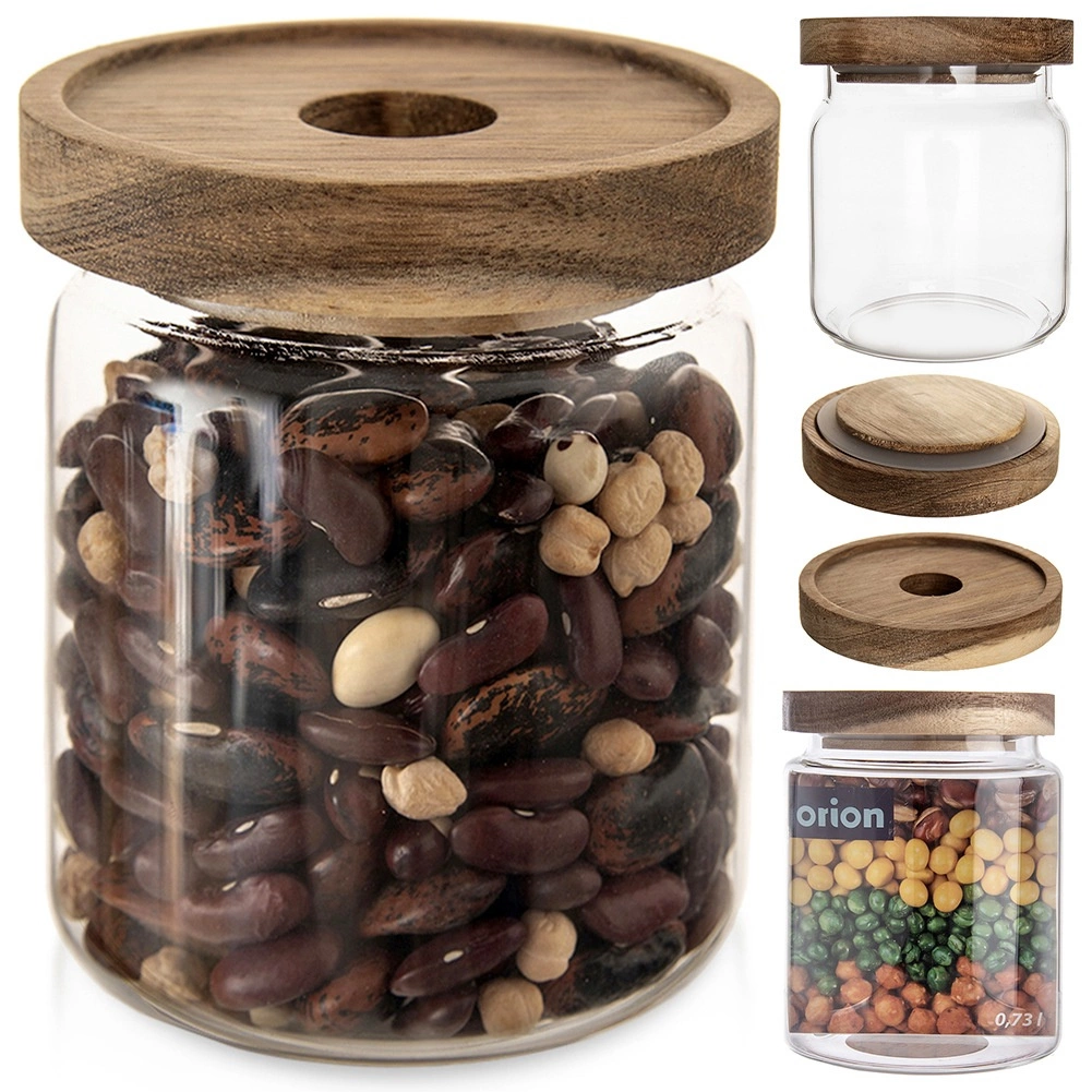 Bocal en verre pour aliments avec couvercle en bois et joint 730 ml