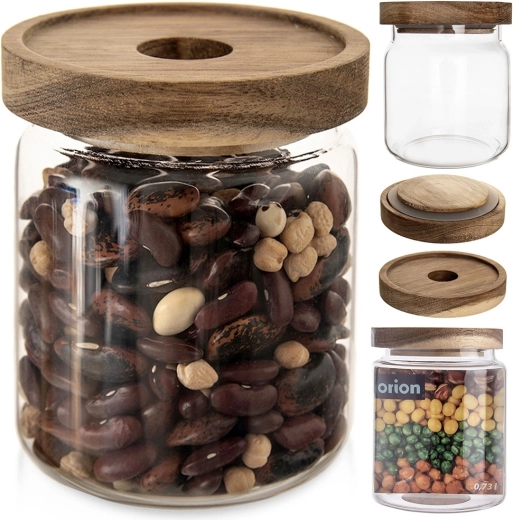 Bocal pratique en verre d’une capacité de 730 ml avec couvercle en acacia et joint en silicone qui garde vos aliments plus longtemps frais et parfumés. Le verre borosilicaté résistant est idéal pour stocker café, pâtes, fruits à coque ou muesli, tandis que les parois transparentes permettent de contrôler facilement le contenu.