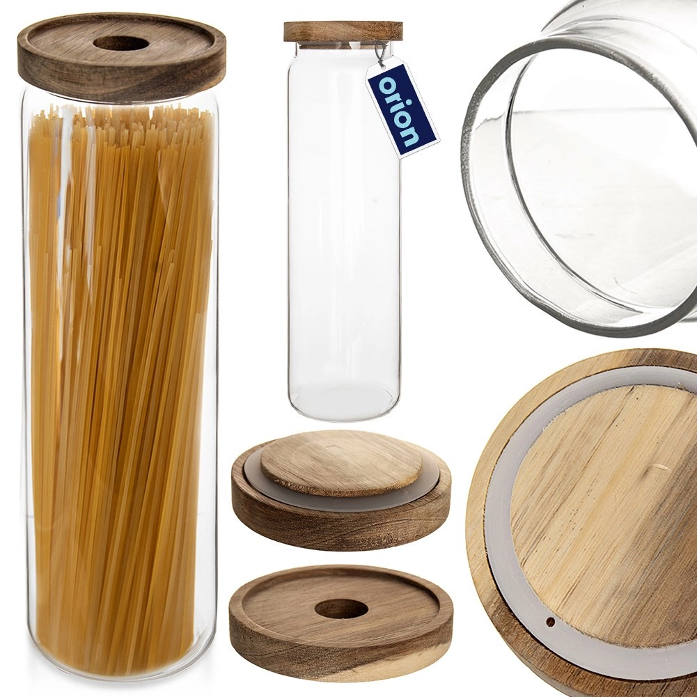 Bocal en verre pour aliments secs avec couvercle en bois et joint d’étanchéité 1,85 l