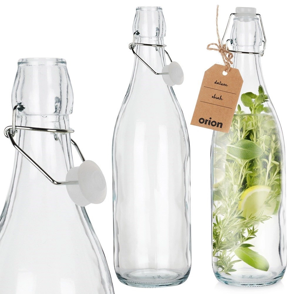 Élégante bouteille en verre d’une capacité de 1 L avec fermeture à clip et joint en silicone, pour garder vos boissons fraîches et parfaitement étanches. Le verre transparent de haute qualité met en valeur le contenu et le design rétro convient à toute cuisine comme à la restauration.