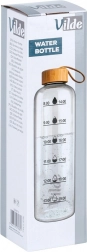 Sur le corps transparent, vous trouverez un marquage horaire du matin au soir, aidant à suivre votre hydratation. La bouteille a une capacité de 1 litre, une hauteur d’environ 29,5 cm et un diamètre de 7,5 cm – idéale au bureau, en voyage ou pour le sport. Le nettoyage est simplifié grâce à la compatibilité lave-vaisselle.
