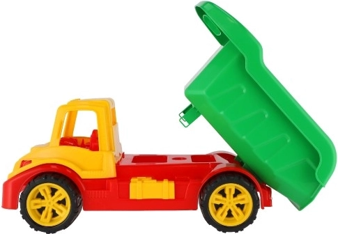 Ce jouet basculant est conçu avec une grande attention à la durabilité, car il est fabriqué à partir de plastique de haute qualité. Les larges et grandes roues permettent de surmonter facilement différents types de surfaces. L'enfant peut placer dans la benne une variété de petits trésors ou jouets.