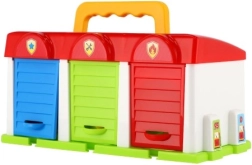 Ce garage coloré en plastique est idéal pour tout petit passionné de voitures. Il offre de l'espace de rangement pour trois voitures, qui font partie du set : une voiture de pompiers, une voiture personnelle et une camionnette. Chaque voiture a son propre accès garage, assurant une entrée et sortie faciles. Le garage soutient le jeu imaginatif et développe les compétences motrices des enfants.