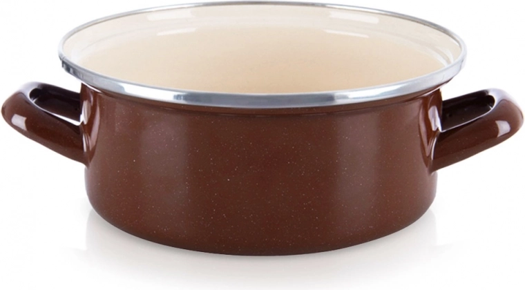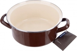 Élégante casserole au style rétro de la collection Brown, alliant la résistance de l’émail à un design intemporel. Extérieur et poignées de couleur brune, intérieur en émail crème, bord supérieur en acier inoxydable pour une meilleure longévité. Grâce à une répartition uniforme de la chaleur, elle est parfaite pour les soupes, sauces et plats mijotés.