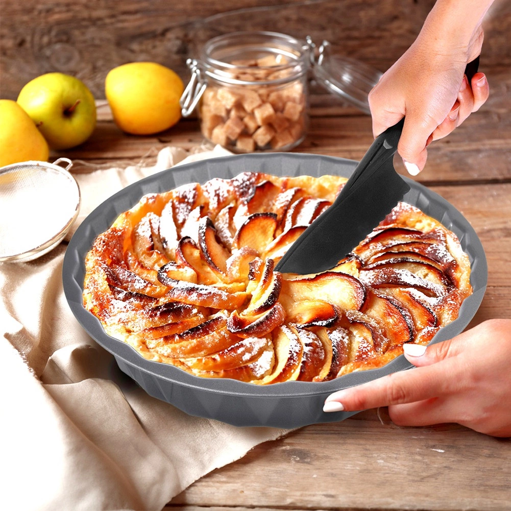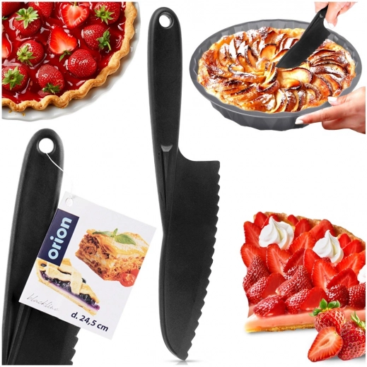 Pratique couteau de pâtissier avec lame dentelée pour une découpe et un portionnage faciles des gâteaux et tartes. Grâce à sa longueur de 24,5 cm et à sa poignée ergonomique, il offre des coupes précises, une prise en main confortable et un entretien facile, y compris au lave-vaisselle.