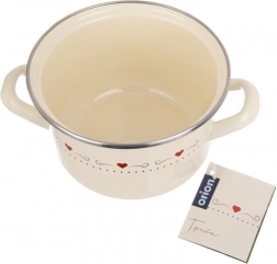 Fabriquée en acier émaillé de qualité, de couleur crème avec un fin motif de cœurs. Le bord en inox augmente la durabilité et l’élégance.