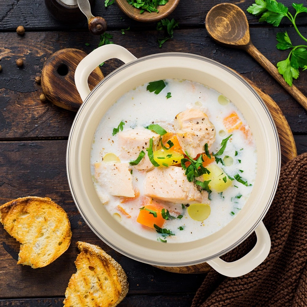 Casserole au style rétro en acier émaillé de qualité, coloris crème, avec un discret motif de cœurs. Sa capacité pratique de 1,4 l est idéale pour les soupes, sauces, accompagnements ou la cuisine quotidienne. L’émail est résistant, facile à nettoyer et respectueux de la santé – convient également aux personnes allergiques.