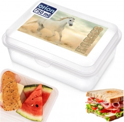 Cette boîte à goûter légère et résistante en plastique de qualité est un excellent choix pour l’école, les sorties et les voyages. Le design transparent avec un motif de chevaux aide les enfants à reconnaître facilement leur boîte. Un compartiment spacieux accueille sandwichs, fruits, légumes et petites collations.