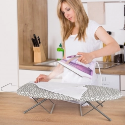 Housse amovible 100 % coton avec feutre de 5 mm pour une glisse fluide et une chaleur homogène. Plateau coulissant pratique pour poser le fer, pour encore plus de confort.